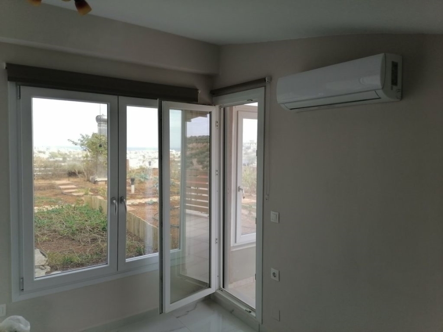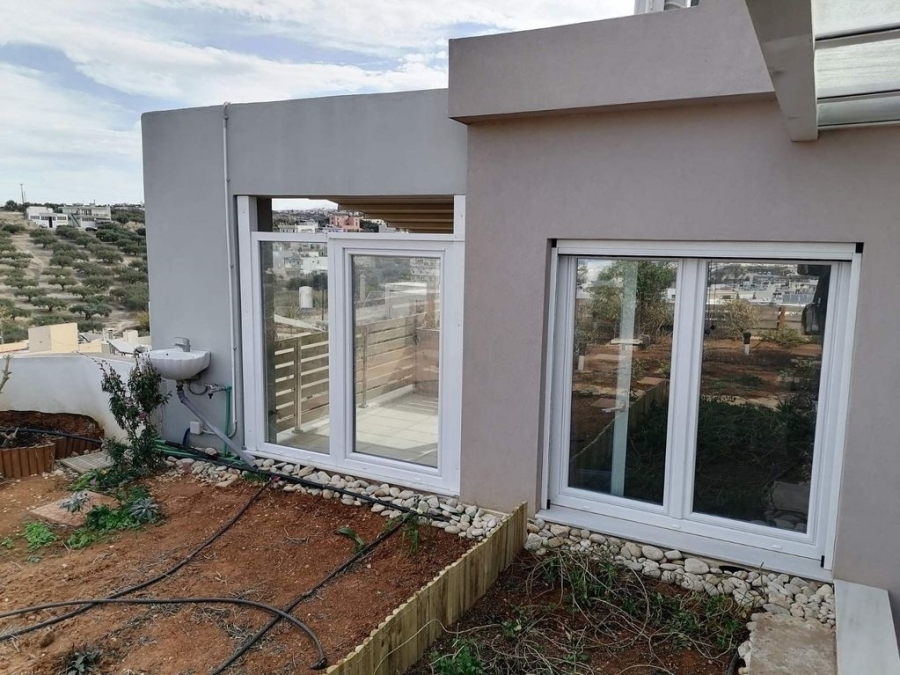 Vermietung Wohnung, Irakleio, Agios Ioannis, 75 quadratmeter., 3rd Fußboden, 2 schlafzimmer, 1 bäder, 1 Küche, Fußboden: Wooden floors + Tiles, frames: Aluminium, baujahr: 2024, Status: Luxuriös, Zertifikat Energie: A+, Eigenschaften: Aufzug, Sicherheitstür, Doppelverglasung, Moskito, Markise, Terrassen, Dachwohnung, Luftig, Vorderseite, Hell, Klimaanlage, Sonnenenergiesysteme, Garten , Neubau, Gemalt, Persönlich - Strom Heizung, preis : 800€