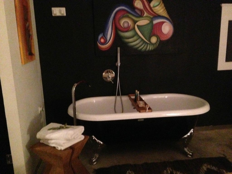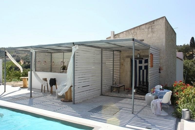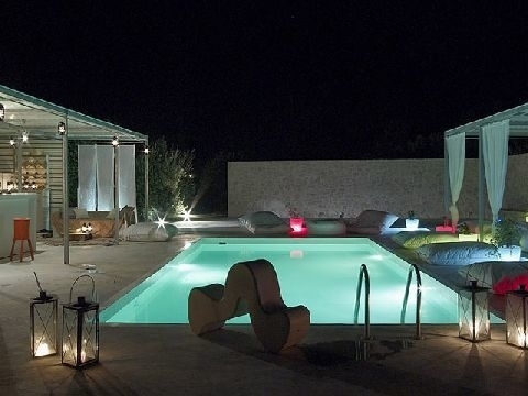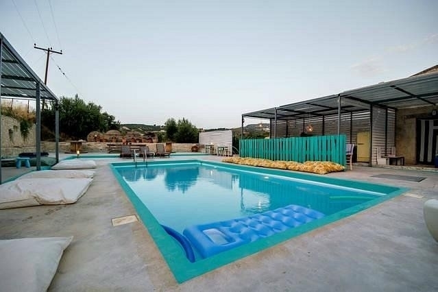 There is a 40.85 sq m swimming pool made of industrial concrete with a courtyard of natural beauty.