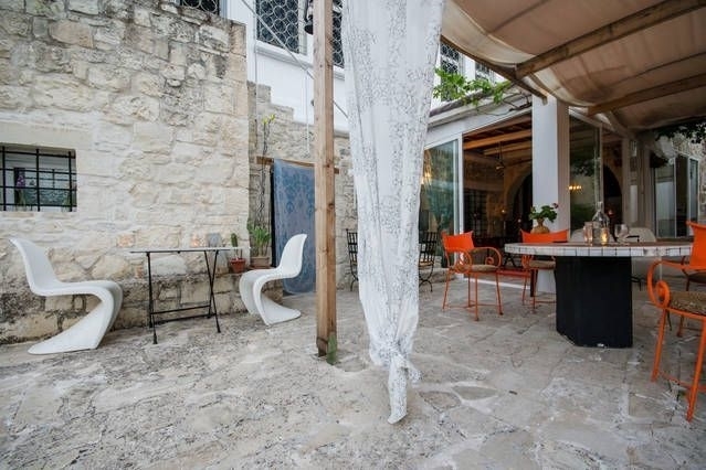 There are also gardens with plants, on various levels, fruit trees and olive trees.