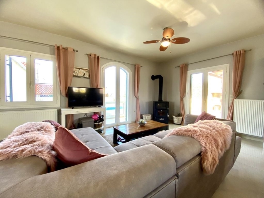Vamos, Litsarda, Villa For Sale, 135 sq.m., In Plot 265 sq.m., Property Status: Amazing, Floor: Ground floor, 2 Level(s), 3 Bedrooms (1 Master), 1 Kitchen(s), 3 Bathroom(s), View: Cityscape, Building Year: 2011, Energy Certificate: A, 2 parking(s), Floor type: Tiles, Type of door frames: Aluminum, Features: Security door, Security alarm, Storage room, Jacuzzi, Cable TV, Internal Staircase, Double Glazed Windows, Window Screens, Balcony Cover, Balconies, BBQ, For Investment, Luxury, Airy, Bright, AirConditioning, Solar water system, Boiler, Swimming pool, Back yard (Garden), New Construction, Painted, Suitable for Commercial Use, Price: 370.000€. SPITI 4 ALL REAL ESTATE, Tel: 2814011196, email: spiti4all@gmail.com